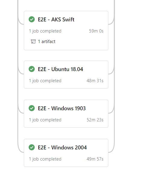 * Separate the npm test and cni test, comment out npm test first. It's a testing PR. * Revert unnecessary change. * update aks-e version from v1.0.1 to v1.0.2 * Update cluster definition from version 1.22.7 to 1.22.15 * Update resource group name. * Comment out unnecessary resource group deletion since the test-kubernetes already did this work. * Update aks-engine version for acn validation. New version is using the latest aks-engine release and remove duplicated and unnecessary npm tests. Remove unnecessary resource clean up step in pipeline since it's already included in the aks-e e2e test. Also update the kubnernetes version accordingly.