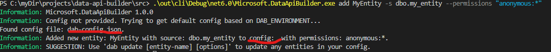 dab add MyEntity -s my_entity --permissions "anonymous:*"