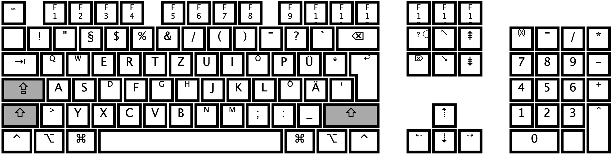 Caps Lock turns this keyboard layout into a regular German QWERTZ layout.