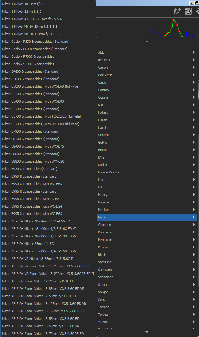 If I want to select a Nikkor Ais lens I can't do that anymore, because the scroll-arrow at the bottom of the lens list is not available. Maybe a gtk issue?