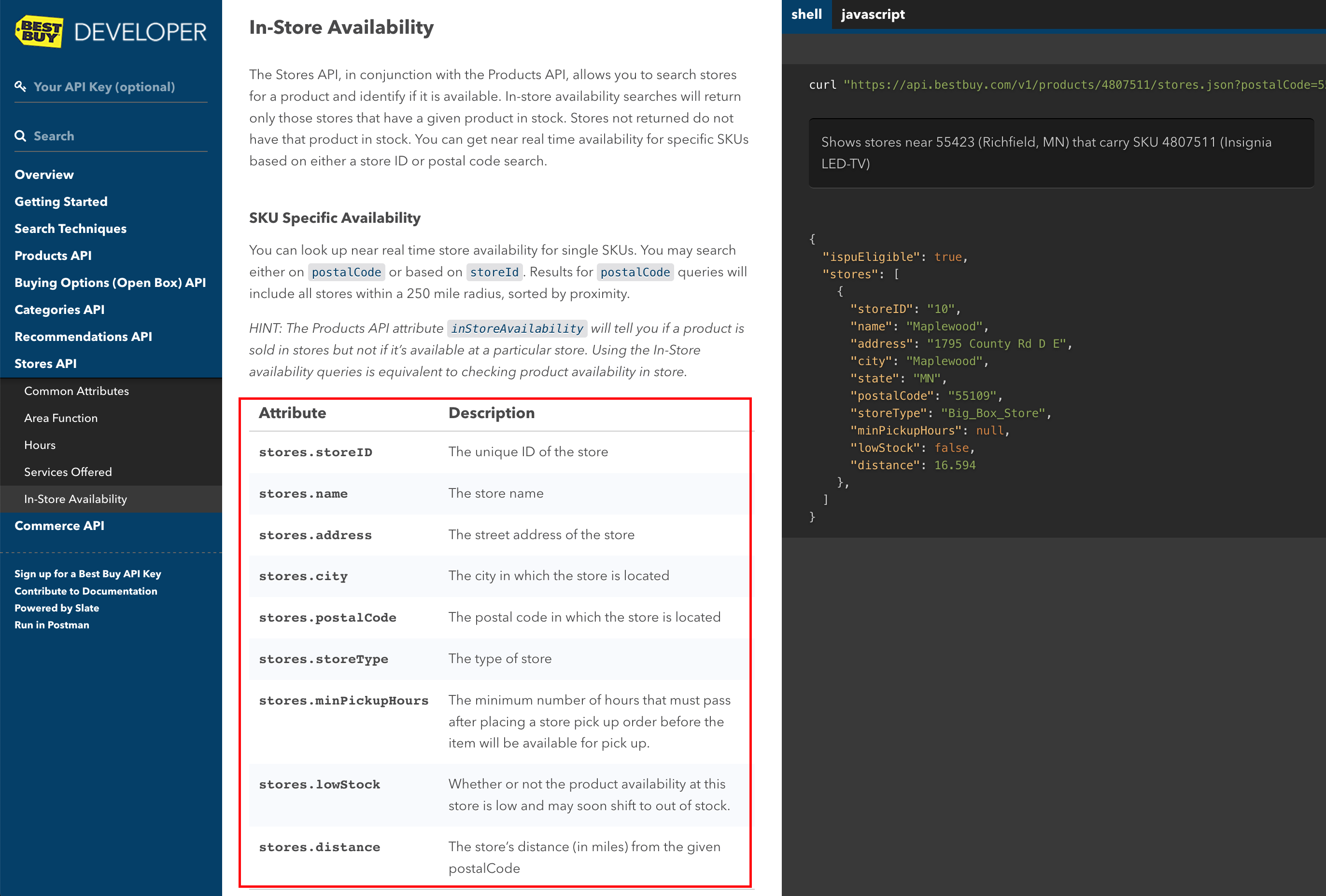 This change adds attribute-level documentation for the stores returned by queries to