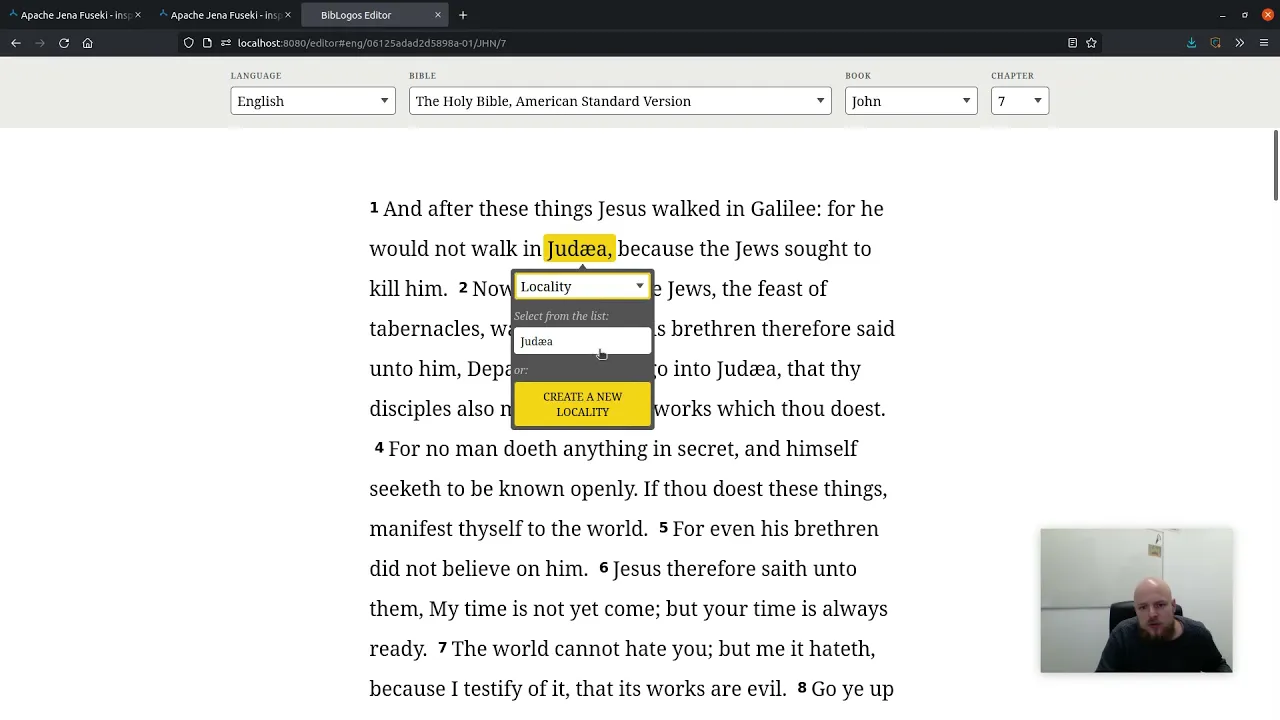 This editor helps with creating a dataset that may present those facts. It is mainly based on human work. A person can click on words or sentences in the bible text and link that to a corresponding description of it. For example you can click on "Alternative name" or "Person". After that the person can save it or send it in for review.