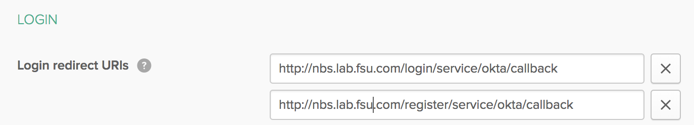 URL is: http://nbs.lab.fsu.com/oauth2/v1/authorize?client_id=0oahn7cgekUVrKBgv0x7&redirect_uri=http%3A%2F%2Fnbs.lab.fsu.com%2F%2Flogin%2Fservice%2Fokta%2Fcallback&scope=openid+profile+email&response_type=code&state=7cKCbkwvn1VsT3LDFODiIGPCikVWaUPokg4BzUkF