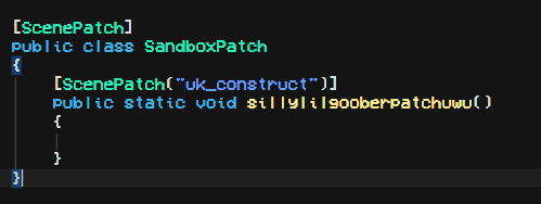 Make a new static class/method and add the [ScenePatch] attribute to it