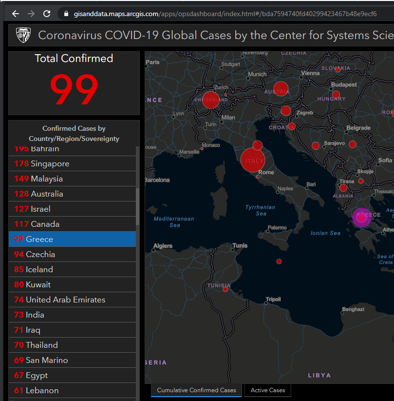 In the list of countries, is has a count for Greece, but when clicking it, you get 'no data' in the various windows. Even the map does not focus on Greece.