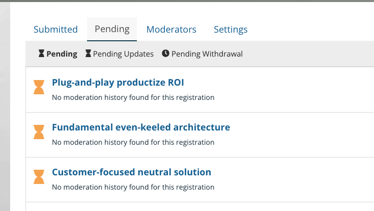 The Submitted tab doesn't show pending registrations anymore, so I've changed it to Accepted