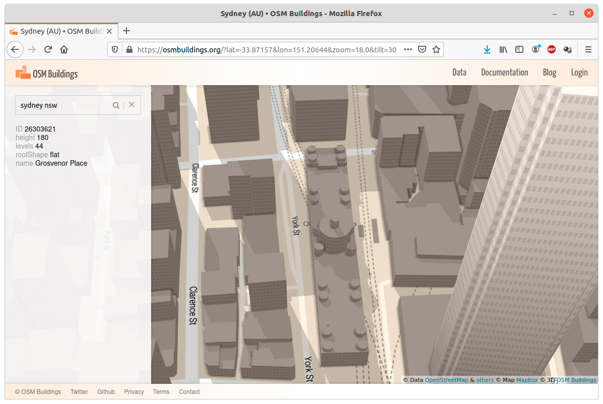 Initially we had this ridiculously cool 3D globe that ran on a very small fraction of computers from your recent podcast interview made me laugh. Put that on a t-shirt in years to come. Thanks for the opportunity to review. I may have overstated my tour of regional centres. I see you solved the Sydney Tower. One Bligh was set to GhostWhite which may or may not be rendering in the chosen colour. I have since changed it to LightSkyBlue out of curiousity. https://www.openstreetmap.org/way/335687876 I added the part flag to BNP Paribas Centre. Thanks for picking that up. I have also done the same with Central Station for https://www.openstreetmap.org/way/16748116 ~ last I walked past the area the clock tower was not floating. The domed roofs are generally squatter than I was expecting. Great progress. I think good to go. |