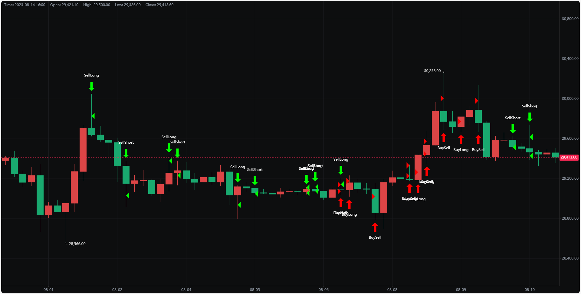 product: BTC-USDT-SWAPlevel: Hour4range: 1692963462000..buy: cci(close, 20) <= -350sell: cci(close, 20) >= 100