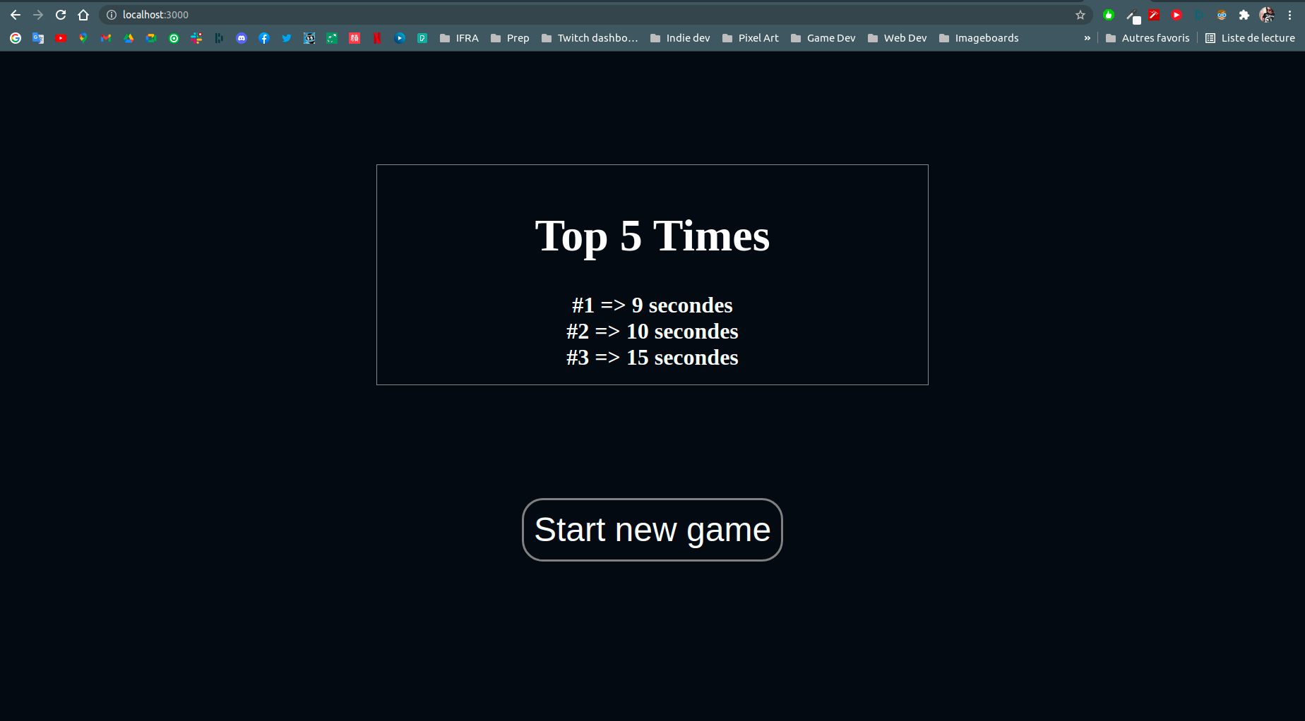 - affiche les 5 meilleurs temps de jeu enregistrés en base de données