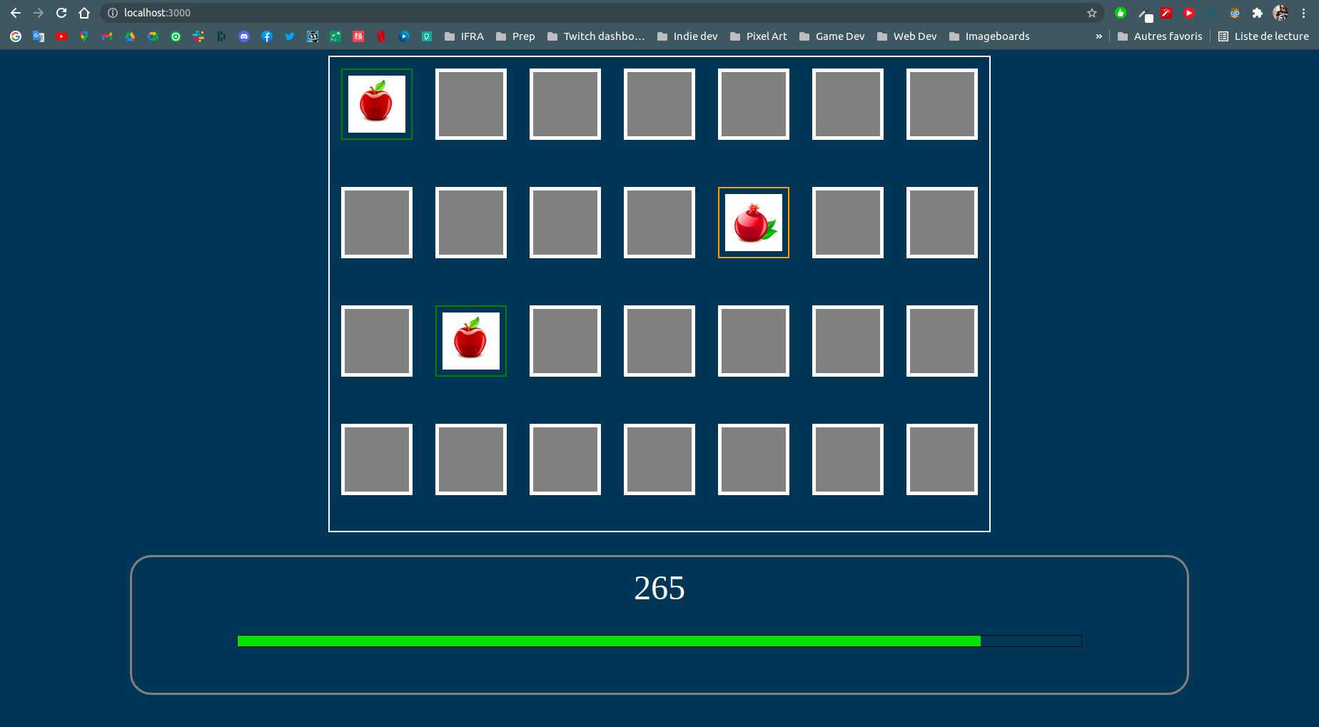 on a 5 minutes, 300 secondes pour trouver toutes les paires de cartes