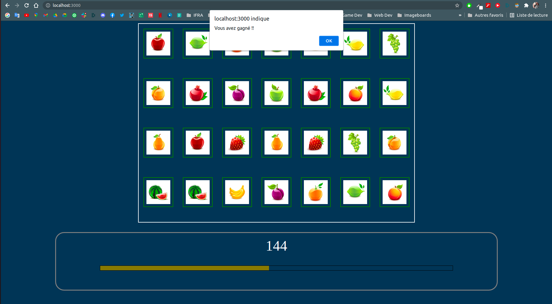 on gagne si on trouve toutes les paires avant la fin du temps imparti