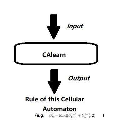 Welcome to CAlearn! Brief introduction of CAlearn CAlearn is a symbolic regression program to generate corresponding rule (as formula) from a given Cellular Automaton data set. This project is based on my bachelor thesis. (@Tokyo University of Science)