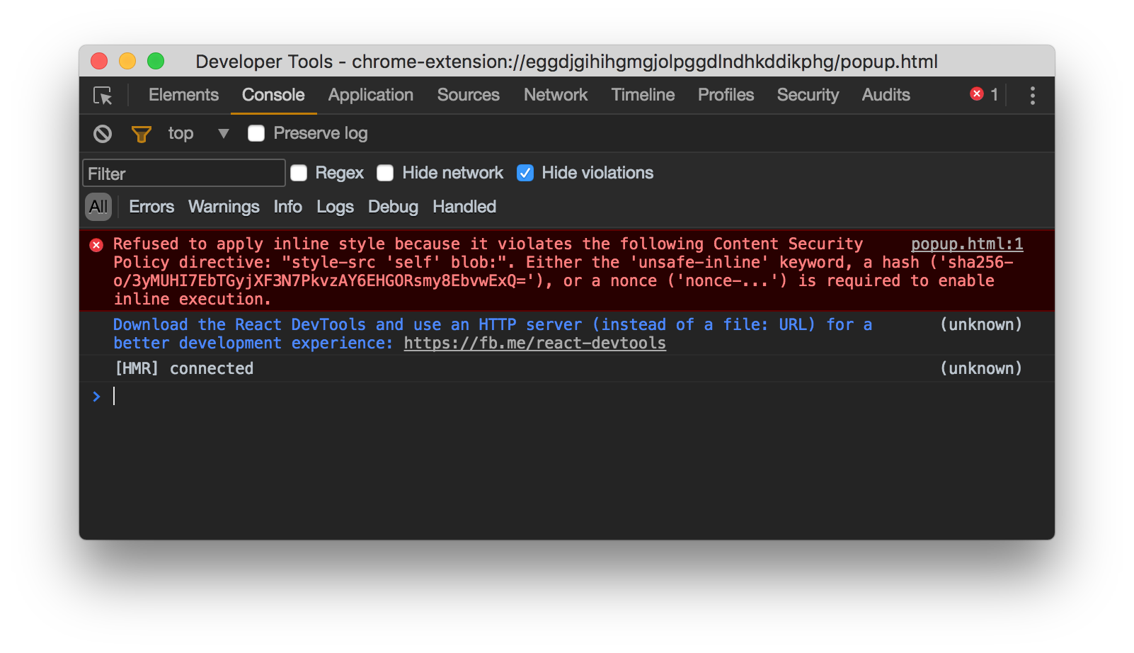 Maybe the style-src content_security_setting isn't necessary in FireFox, but it is in Chrome, evidently. Can you go through Chrome in dev and prod mode, Firefox in dev and prod mode, and check for these errors, and heuristically determine the nuances?