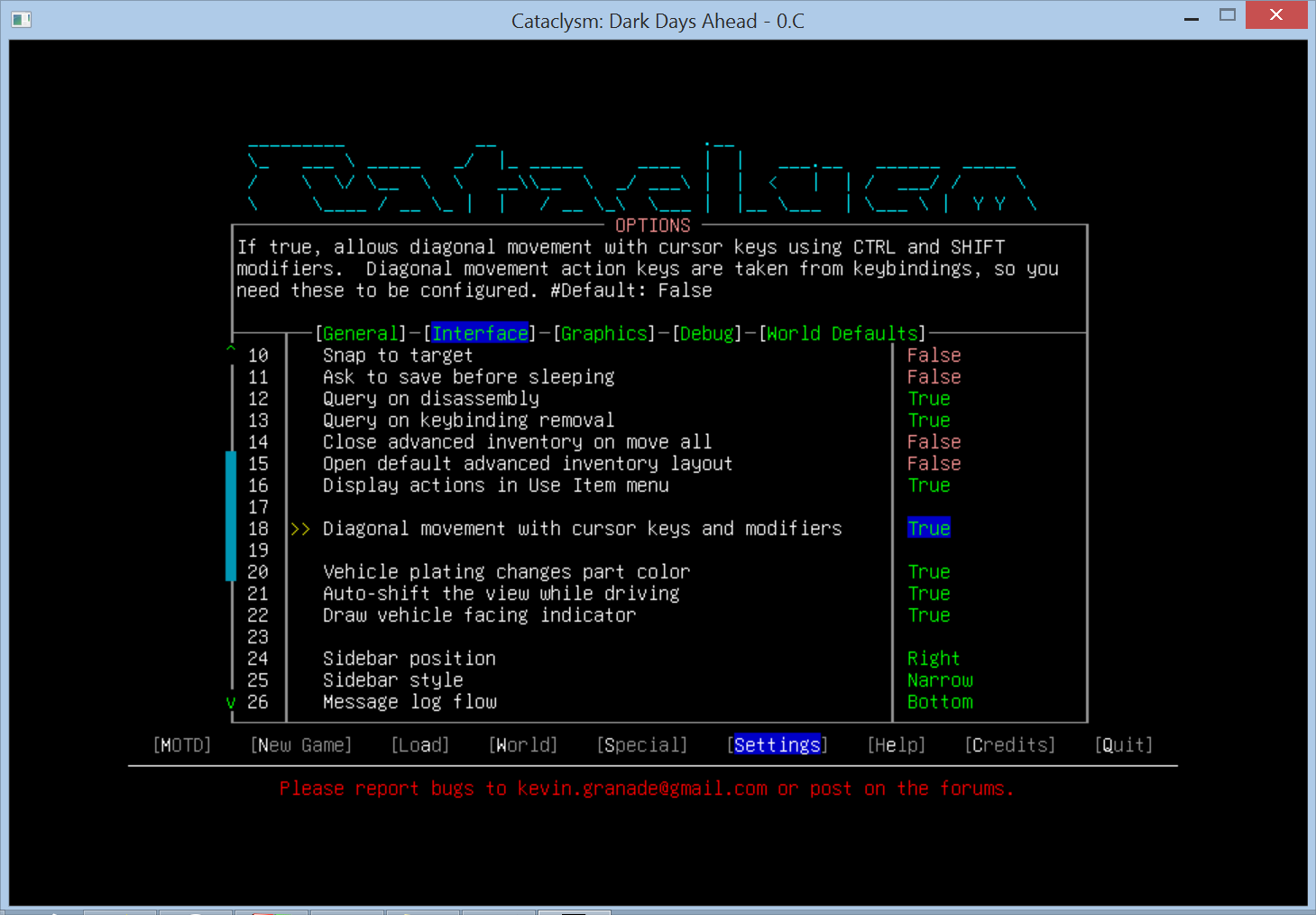 DIAG_MOVE_WITH_MODIFIERSinterface option (currently enabled only in SDL builds and disabled in CURSES build);Default key bindings for diagonal movement: