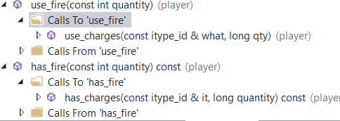 Do you suggest combining these two functions to a single one bool player::use_or_has_fire( const int quantity, const bool ) to get rid of duplicate code and make existing functions just wrappers of a new one?