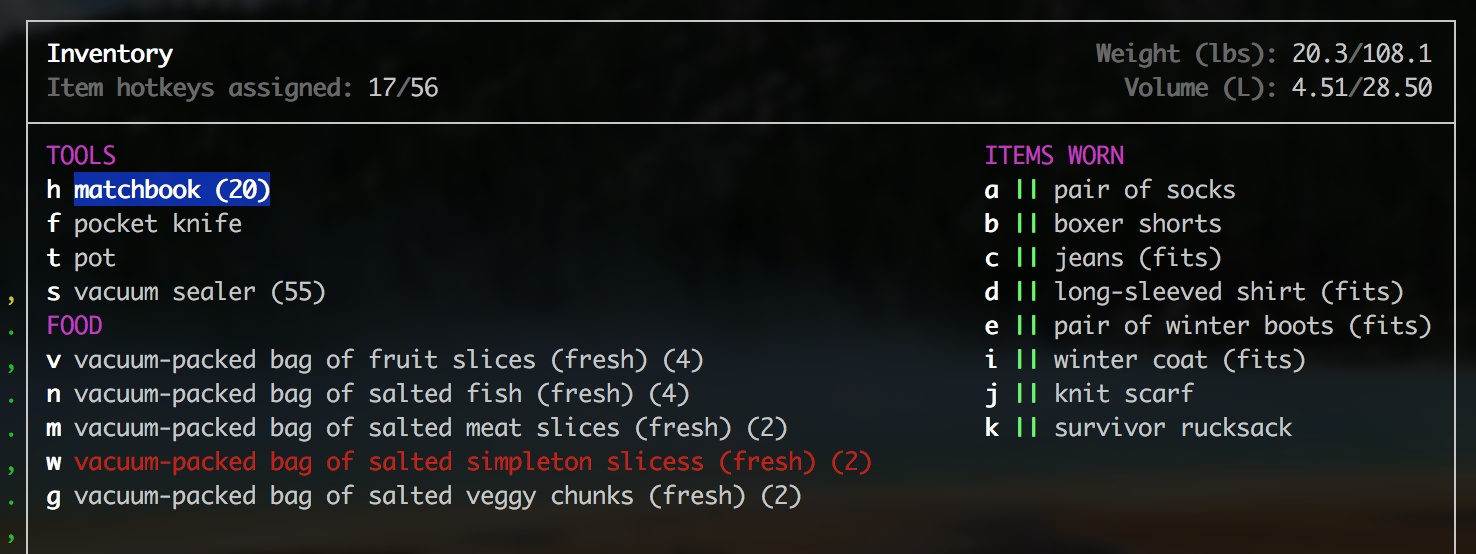 The crafting and eating of vacuum-packed foods should work the same as canned and jarred foods. Currently, vacuum-packed foods do not show up in the eating menu (pressing 'E'.) One has to first unseal the item to eat it. But canned items do show up in the eat menu and when eat them they automatically unseal the item. This change creates the same behavior for vacuum-packed food.