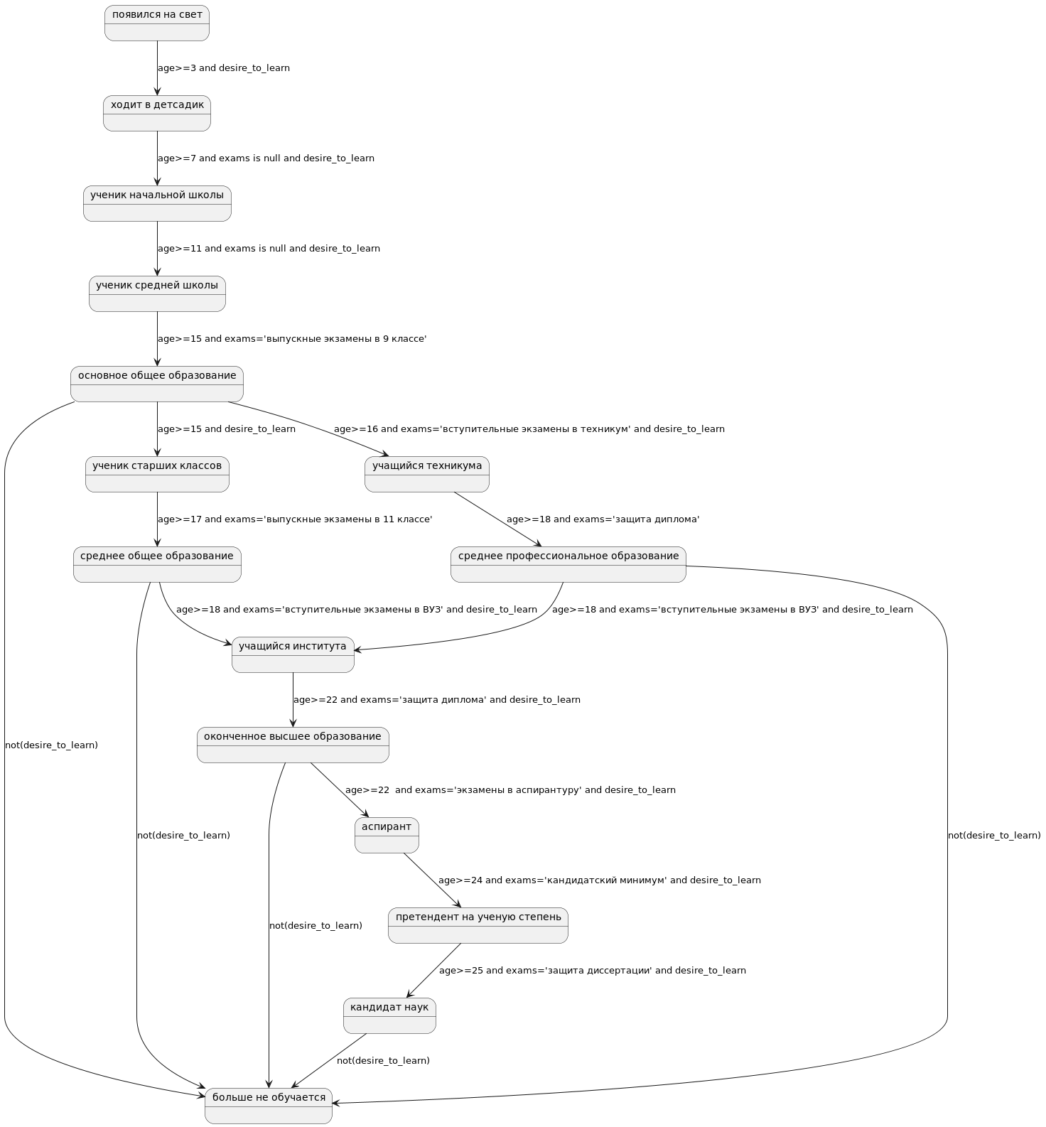13 14 больше не обучается not(desire_to_learn)
