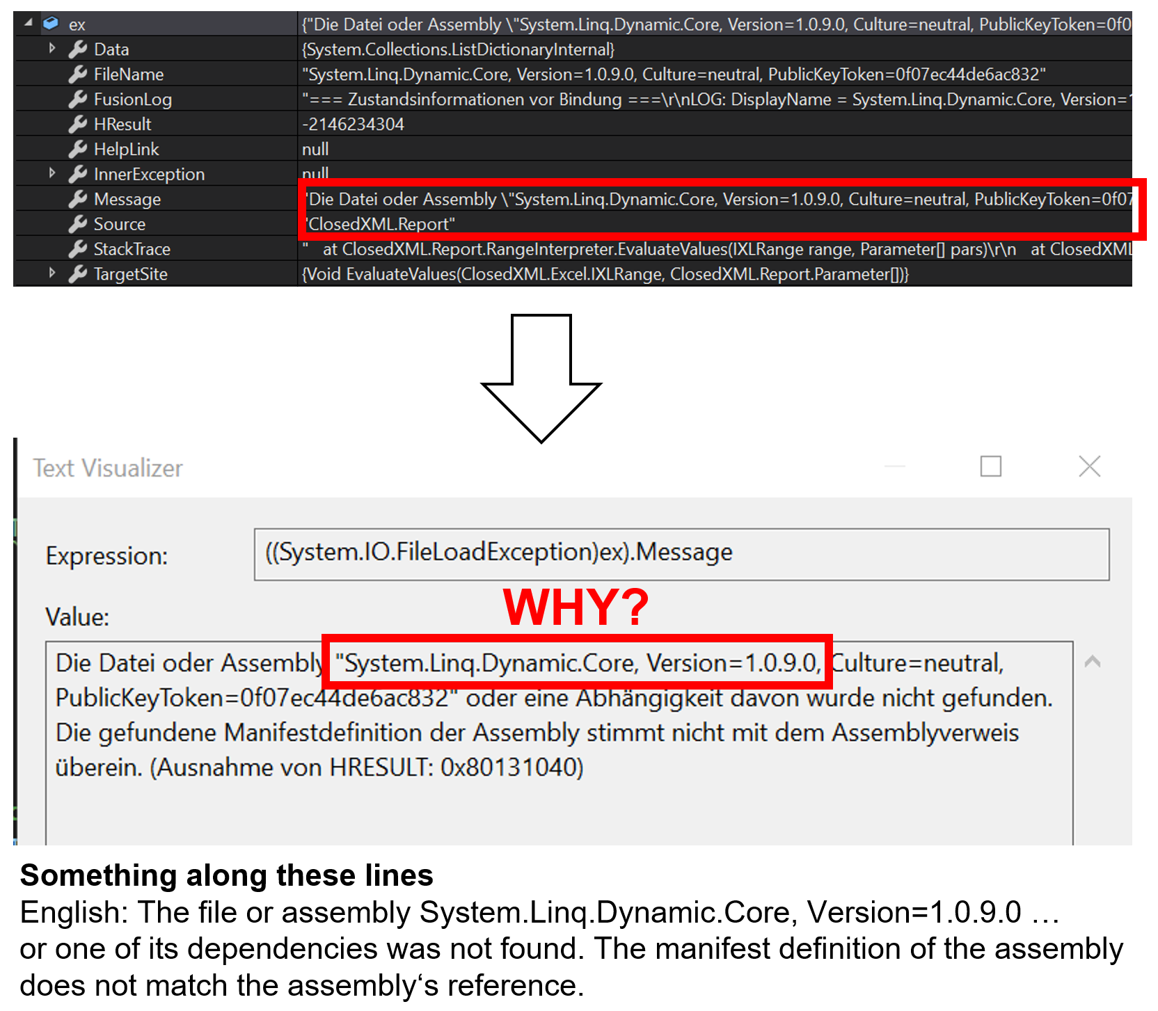 can you please bump the version for the dependency "System.Linq.Dynamic.Core" from 1.0.9 to 1.1.1 (latest) in NuGet package. Although the package description says that it works with version 1.0.9 and above, it actually does not (see screenshots)!