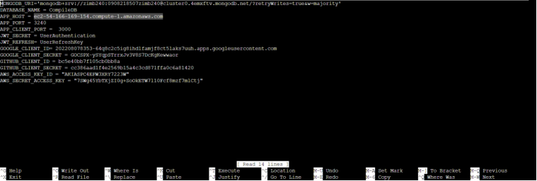 nano .env sẽ hiển thị như hình sau đó thay đổi APP_HOST thành Public IPv4 DNS