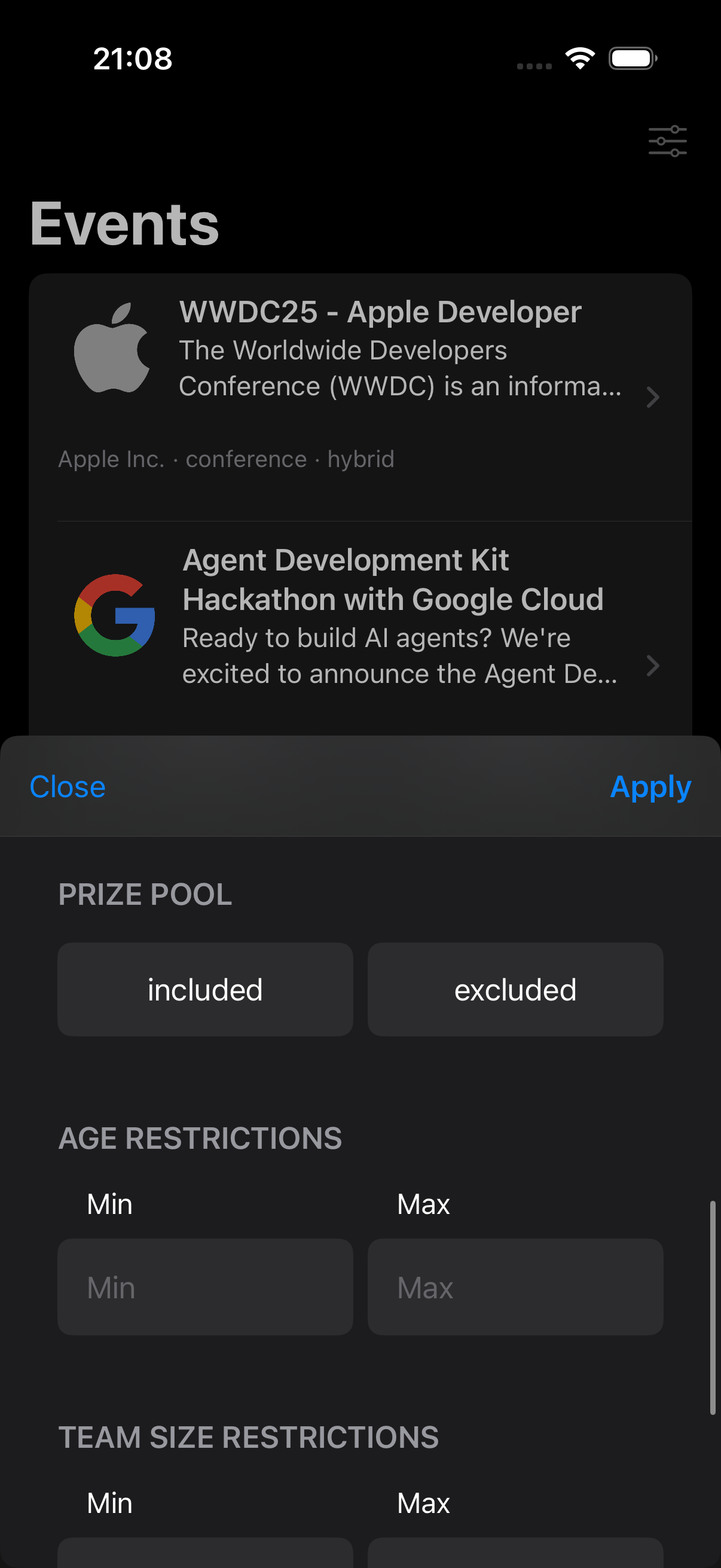 An app for browsing all kinds of tech related events. Data is fetched from a remote HTTP server and cached in device's local storage. In case of a network error, an alert is dispatched and cached data is displayed. The event list implements endless scrolling. Events can also be browsed using a map. Tapping on an event marker on the map redirects to the event view.