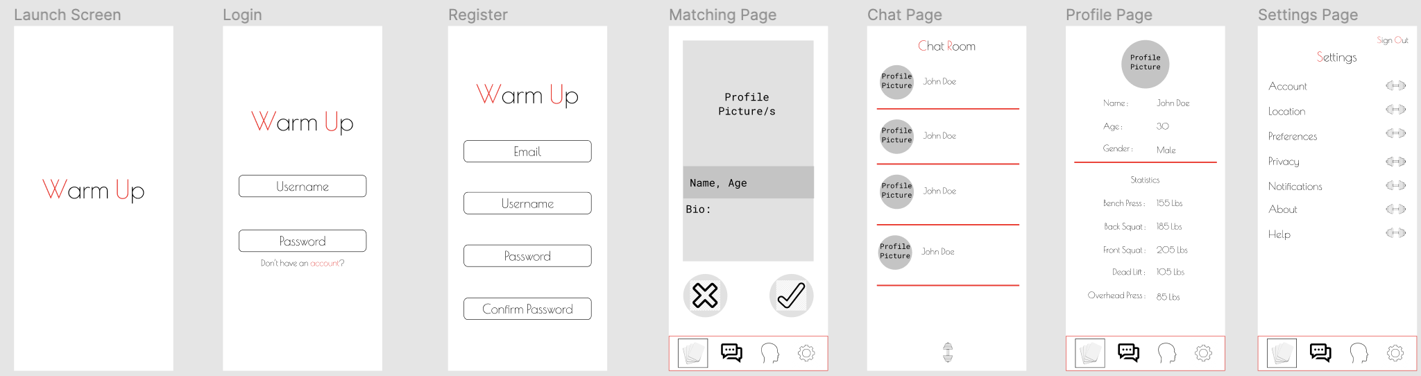 - Story: Allows users to find other users with similar stats from the gym to accopany them to a gym session.