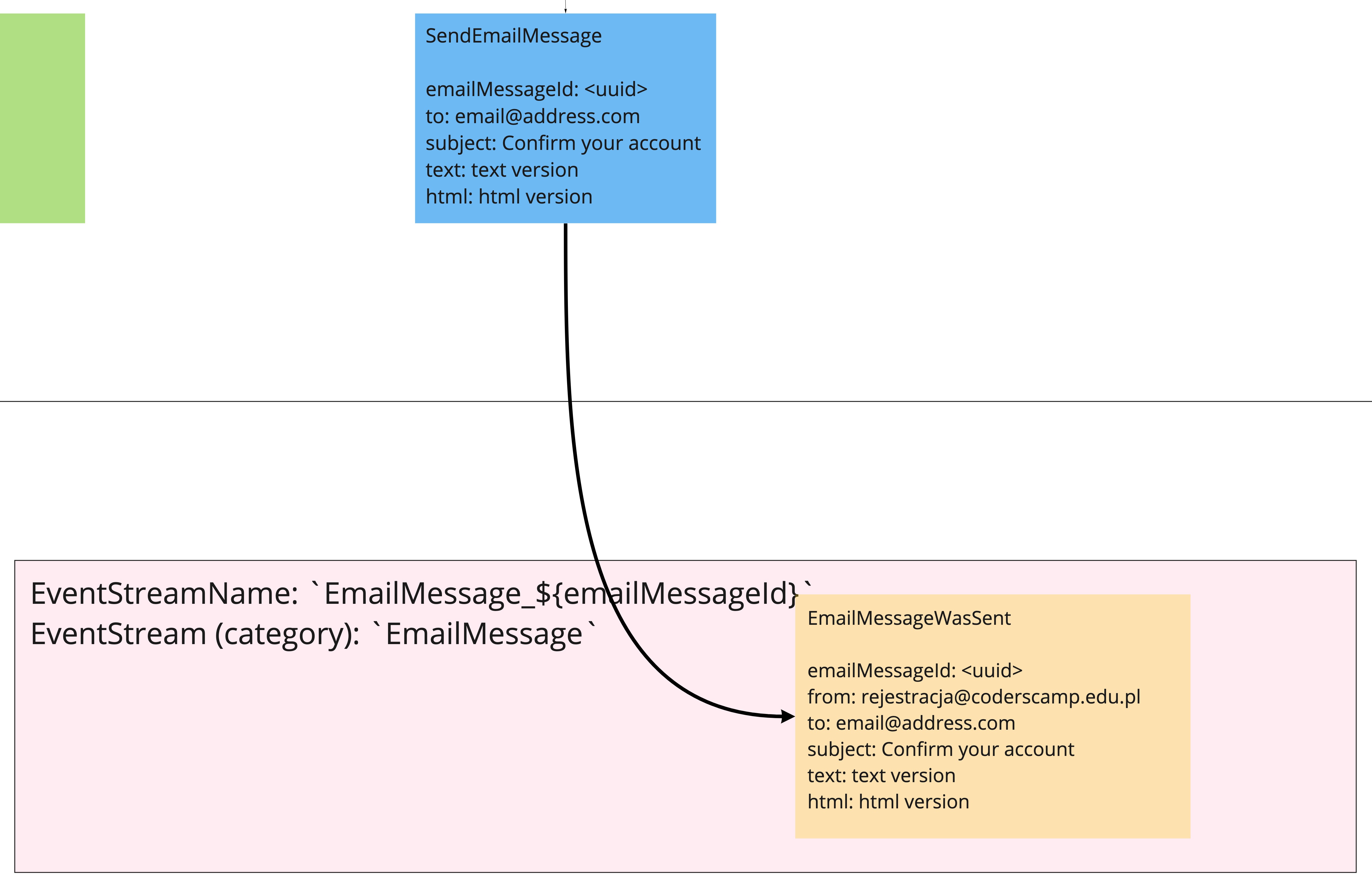 Send email using Nodemailer before saving EmailMessageWasSent event (executing domain logic).