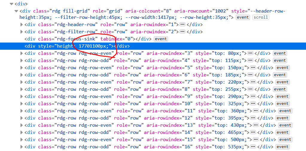 There is one div, whose height is continuously growing. This cause the table cells disappear.