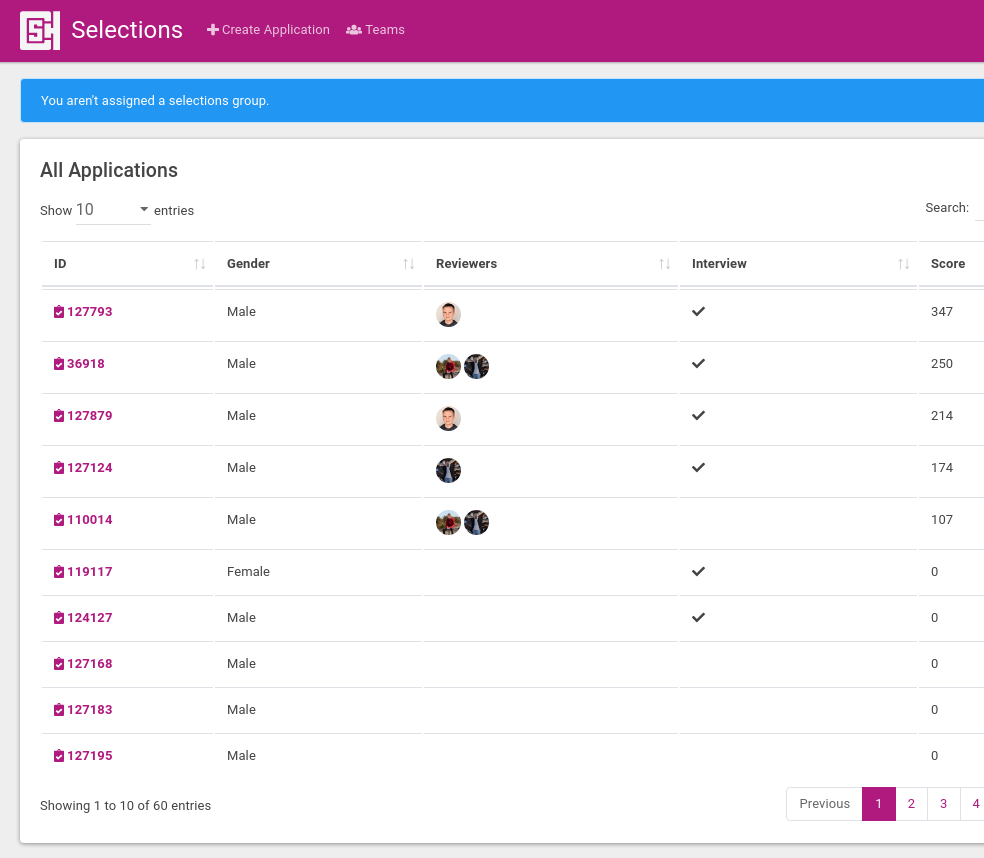 Includes all applications list for RTPs and Evals