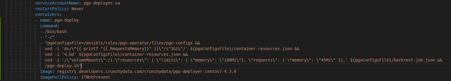Crunchy Postgres Operator added a number of flags that allow clusters to set different resource requests for CPU and Memory for Crunchy Postgres components. The --enable-memory-limits and --cpu flags (from what I understand from container-resources.json) sets the limit = request sizes. For our use case we force the CPU/memory limits cluster wide to be so small that pods will be unable to run unless the resource/memory limits are configured, basically to ensure there are always some reasonable limits in place and a memory/cpu leak doesn't get missed. Because of this, each pod has different values for resource requests and limits. Additionally it would be useful to be able to set container resource values on pgBackRest jobs.