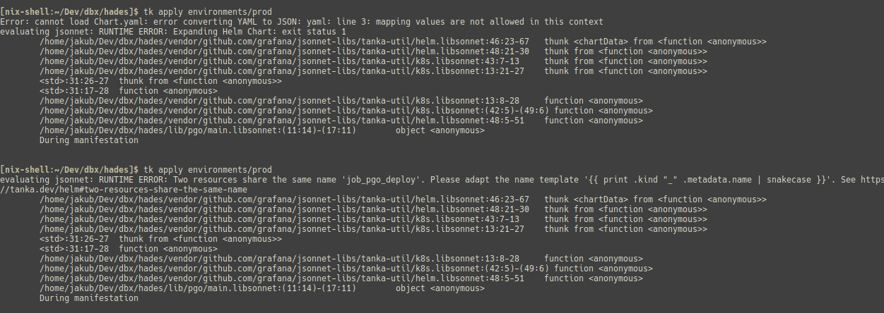 While importing the helm chart into Tanka it complains for 2 reasons. Chart.yml contains invalid key mapping on the description line. Multiple jobs (install, update, uninstall) have the same metadata name.