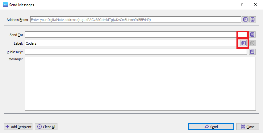Move choose address from address book button next to Send To Textbox. As the button populates all three fields, best to have it on the first line