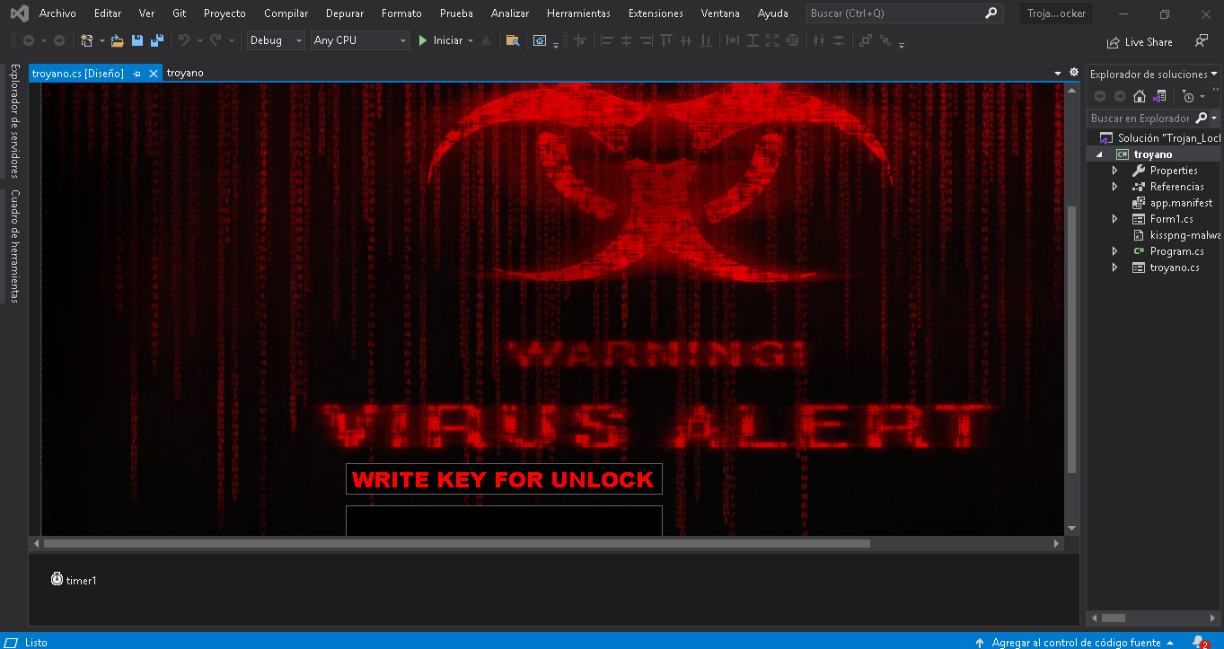 troyan locker es un troyano que bloquea la pantalla de tu computador haciendo que no puedas acceder a tus archivos viene con audio incluido viene con auto inicio asi que no te podras librar de el tan facil mente :)