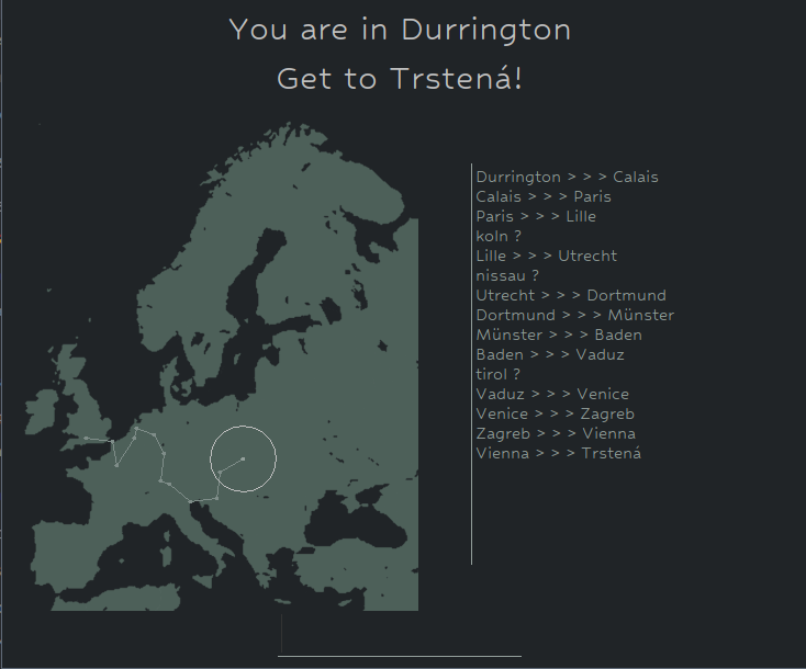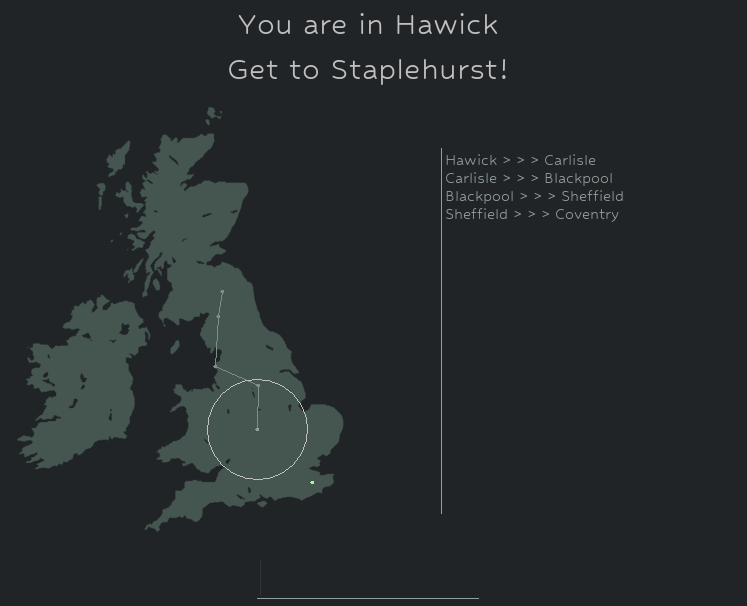 This program was designed to be like a mini game. The objective was to navigate from one city to another within the UK, however you can only move to nearby cities. The program was named Escaper to allude to the murder mystery theme, as you are acting as a murder escaping across the UK.