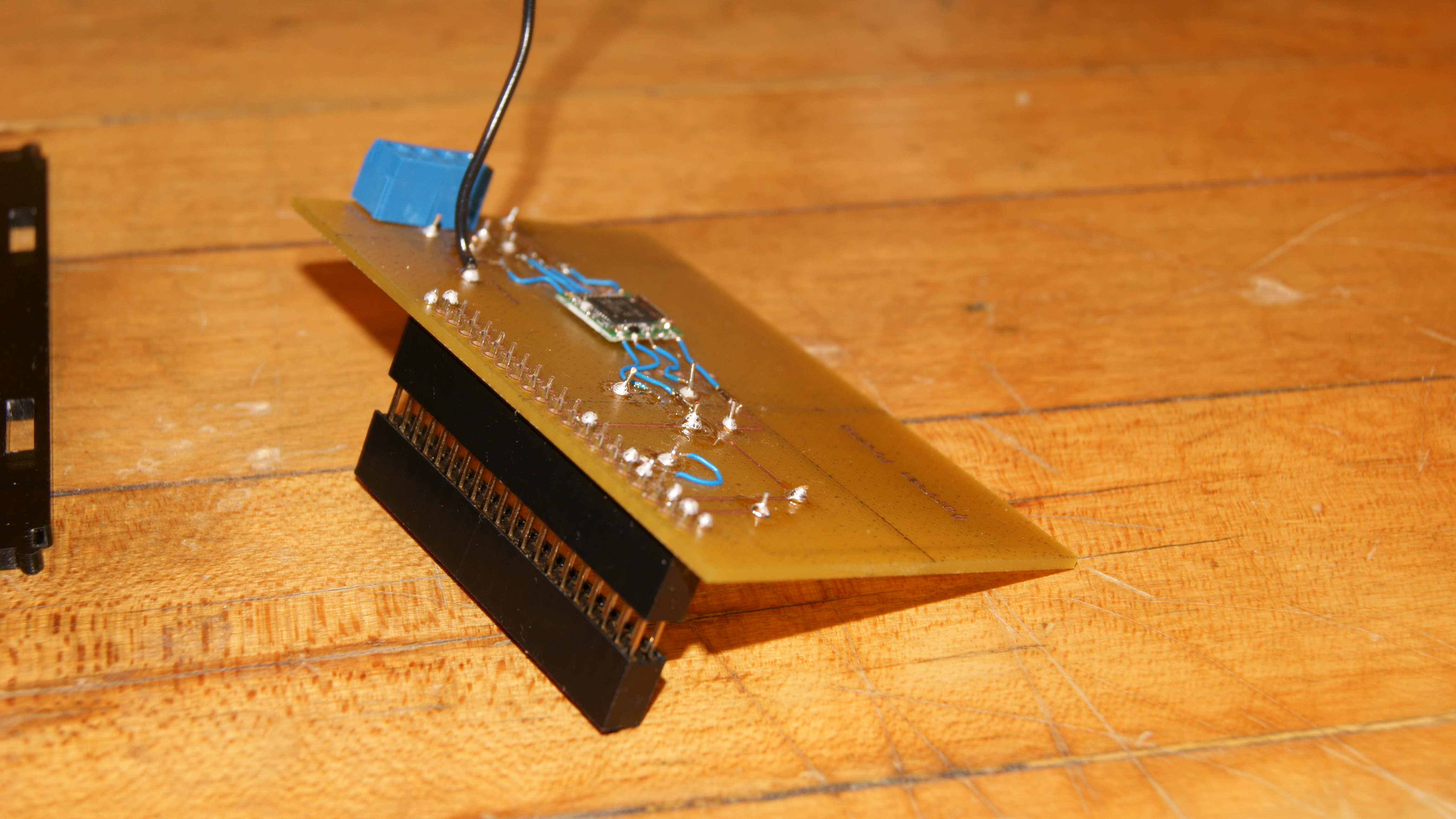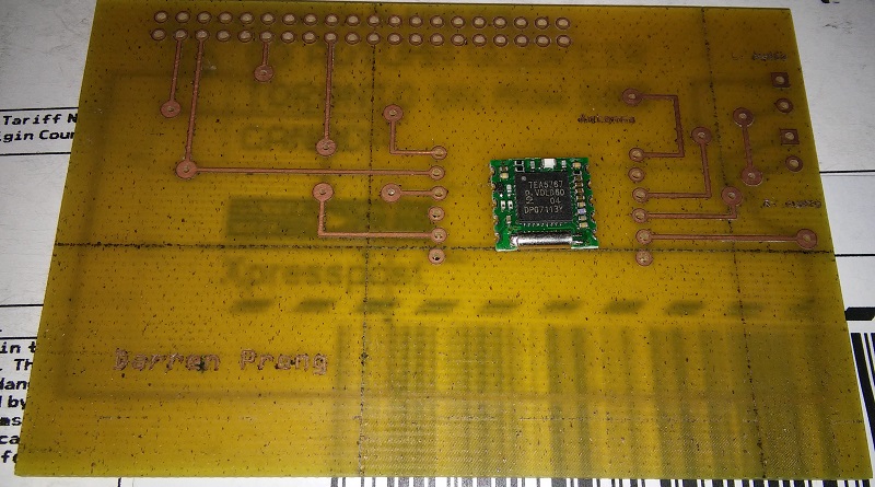 Next step will be to solder a jumper wire from each terminal on the sensor to the corresponding trace on the PCB.