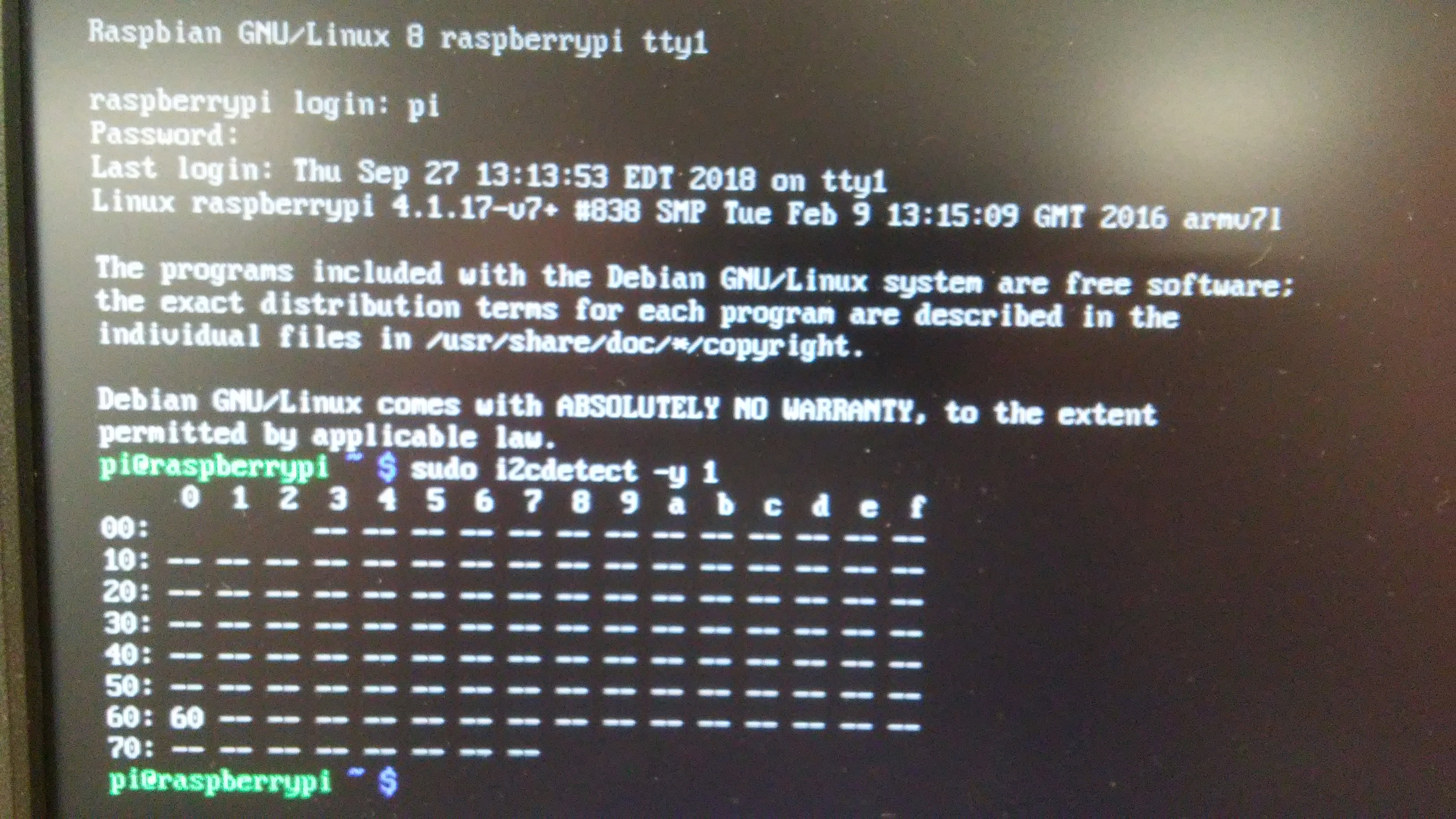 The first step in making sure your PI will be able to play music will be its ability to first boot up, then to enable I2C devices, then to detect that the PI can recognize the sensor.