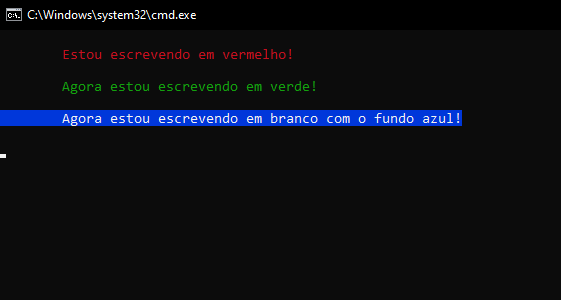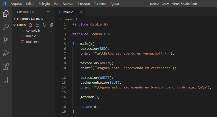 | Exemplo de código usando as funções textcolor() e backgroundcolor() |