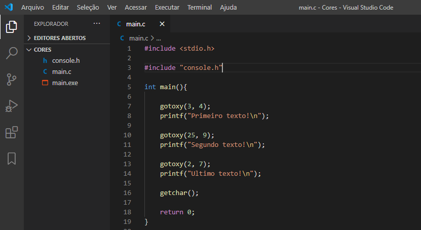 int gotoxy(DWORD x, DWORD y);Funcionalidade: Aponta o cursor para determinada posição do console.