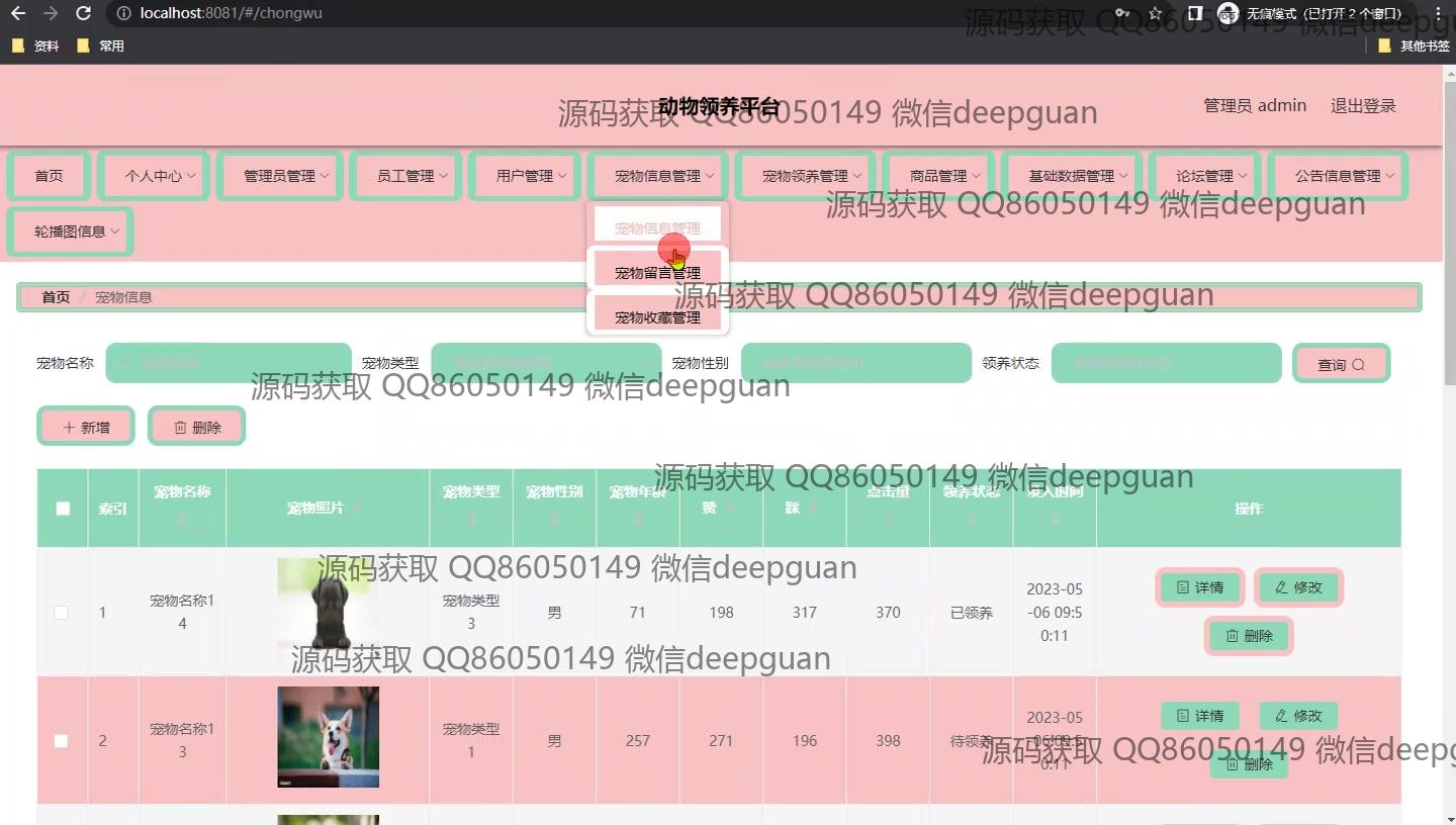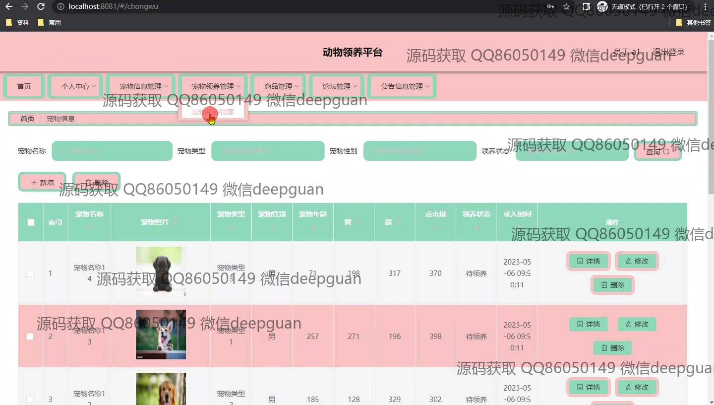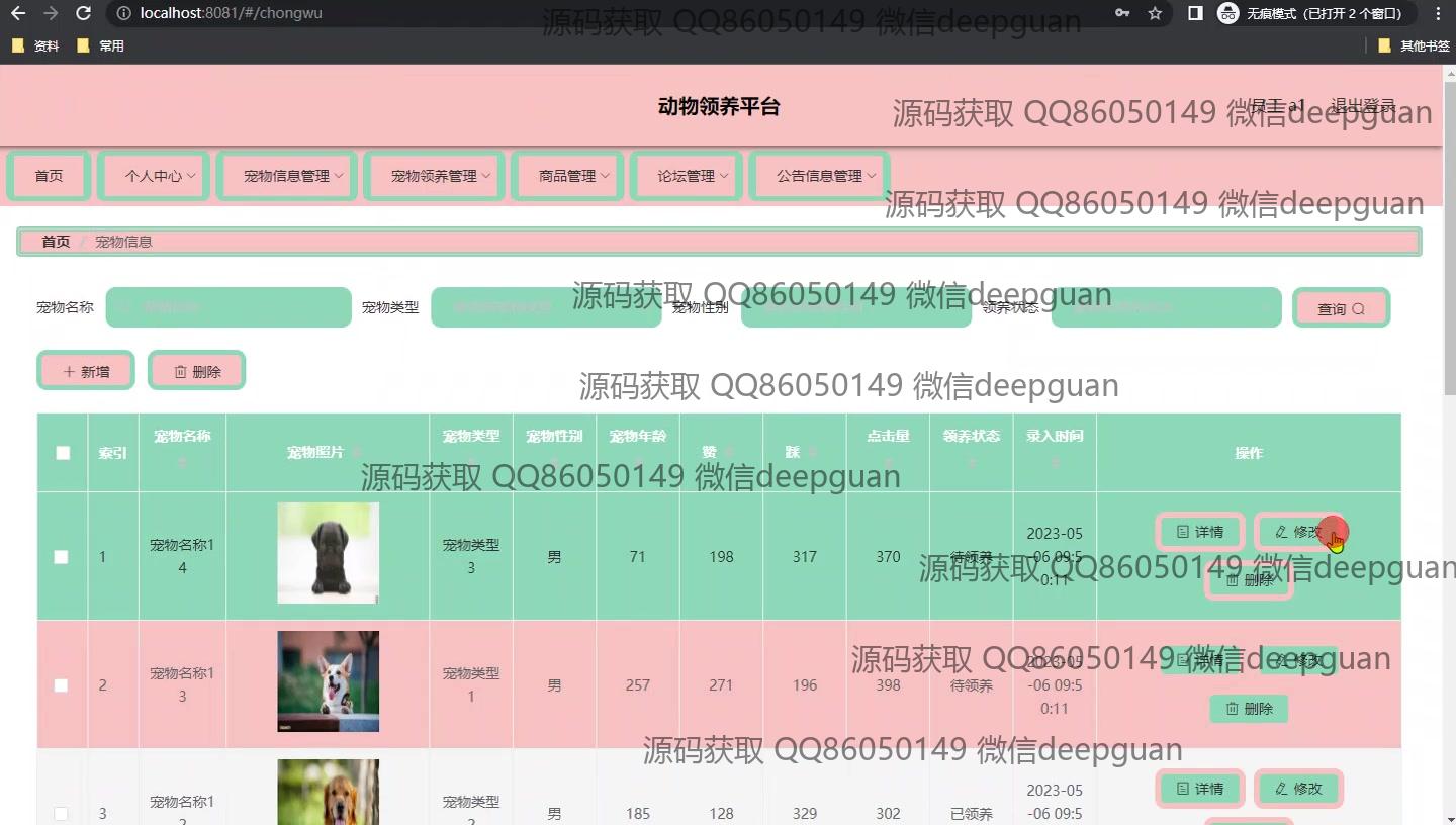 动物领养平台:角色分为管理员、用户;功能包括宠物领养、信息管理、商品与订单管理、用户交互社区和多种支付方式,提供高效便捷的领养流程和互动体验。 --计算机毕业设计源码;毕设源码;java毕业设计源码