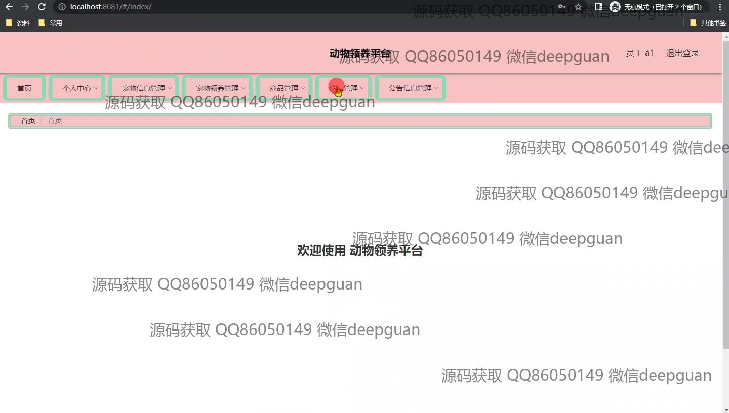 员工:具有管理自身信息的权利,能够访问与自身部门相关的模块功能。参与宠物信息维护和领养申请的审核工作,并可以通过平台完成日常业务交接。能够查看个人任务及其执行情况,也可与平台管理员进行信息互动,方便高效完成工作。