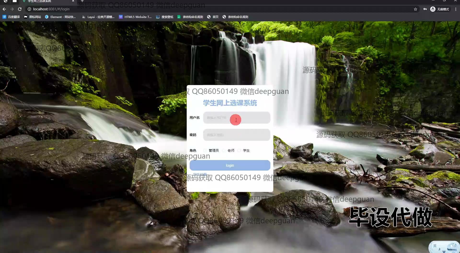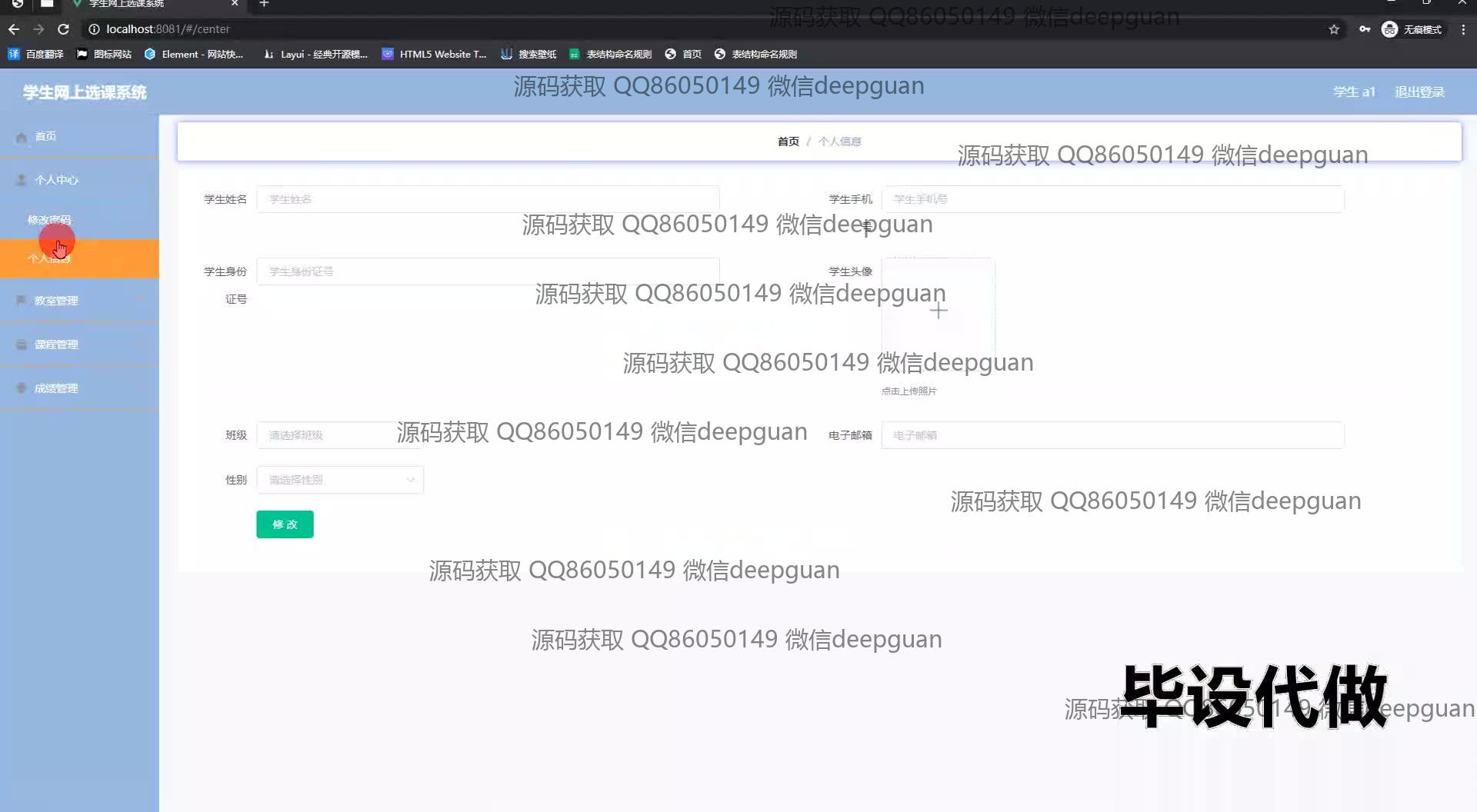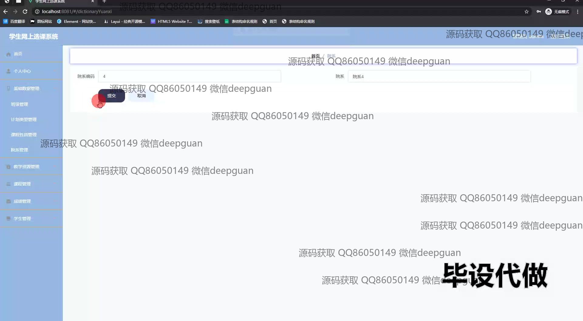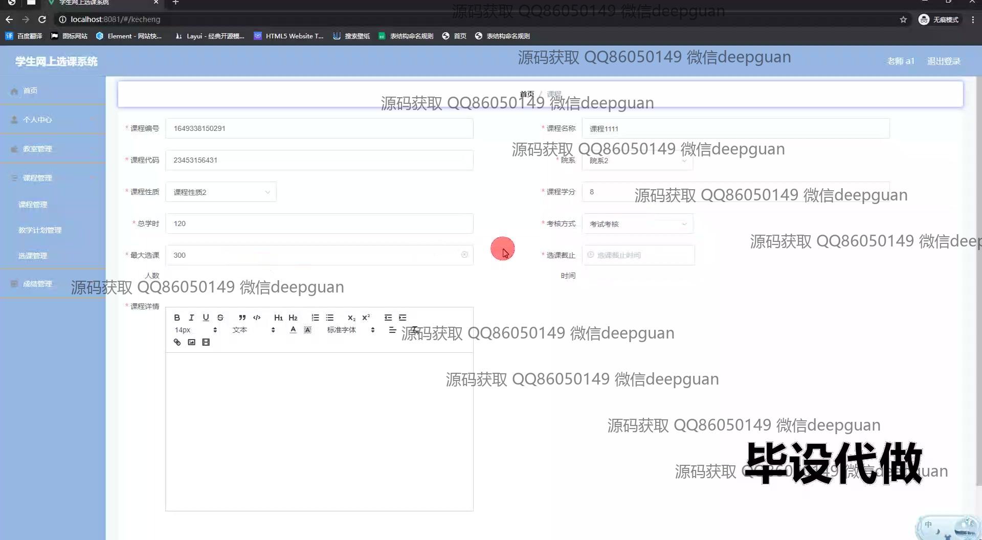学生网上选课系统:角色分为管理员、教师、学生;功能包括个人信息管理、课程管理、选课管理、成绩管理、教学计划管理、教室管理,支持用户注册和登录。界面简洁直观,便于信息录入和查询。 --计算机毕业设计源码;毕设源码;java毕业设计源码