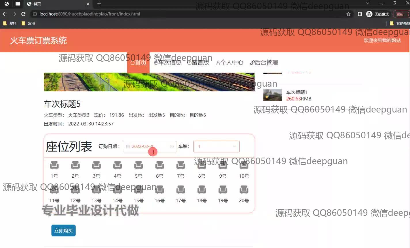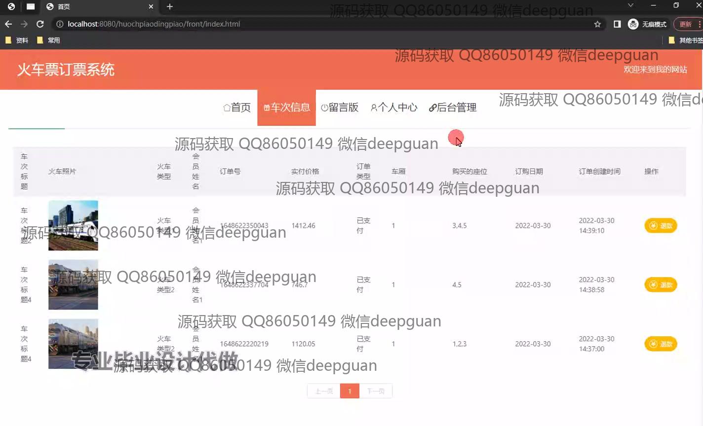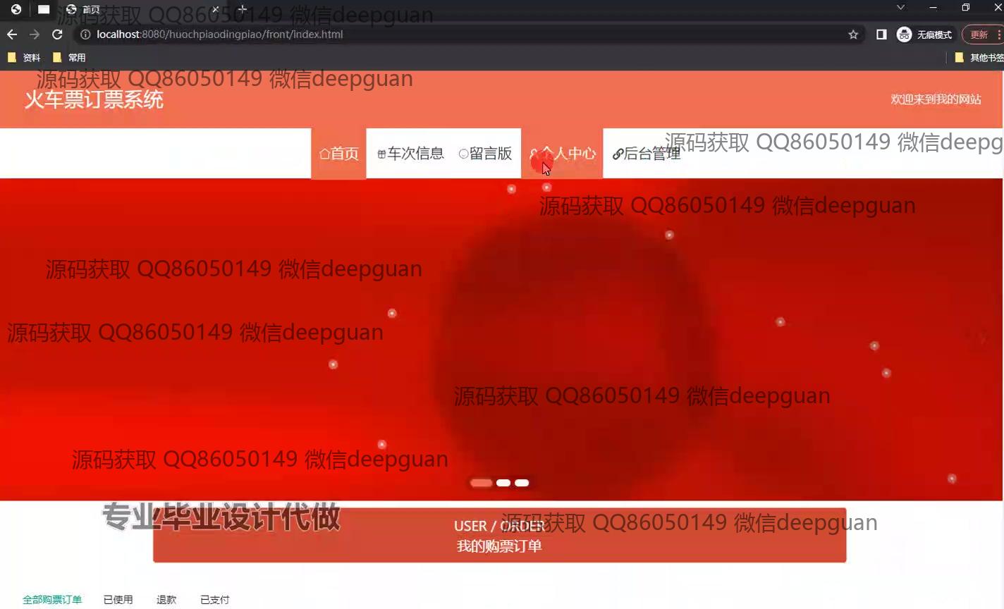 基于Java的火车票订票系统,角色分为管理员和用户;功能包括用户注册和登录、车次信息查询、留言板互动、订单管理及在线支付,提升了用户的便捷操作体验。 --计算机毕业设计源码;毕设源码;java毕业设计源码
