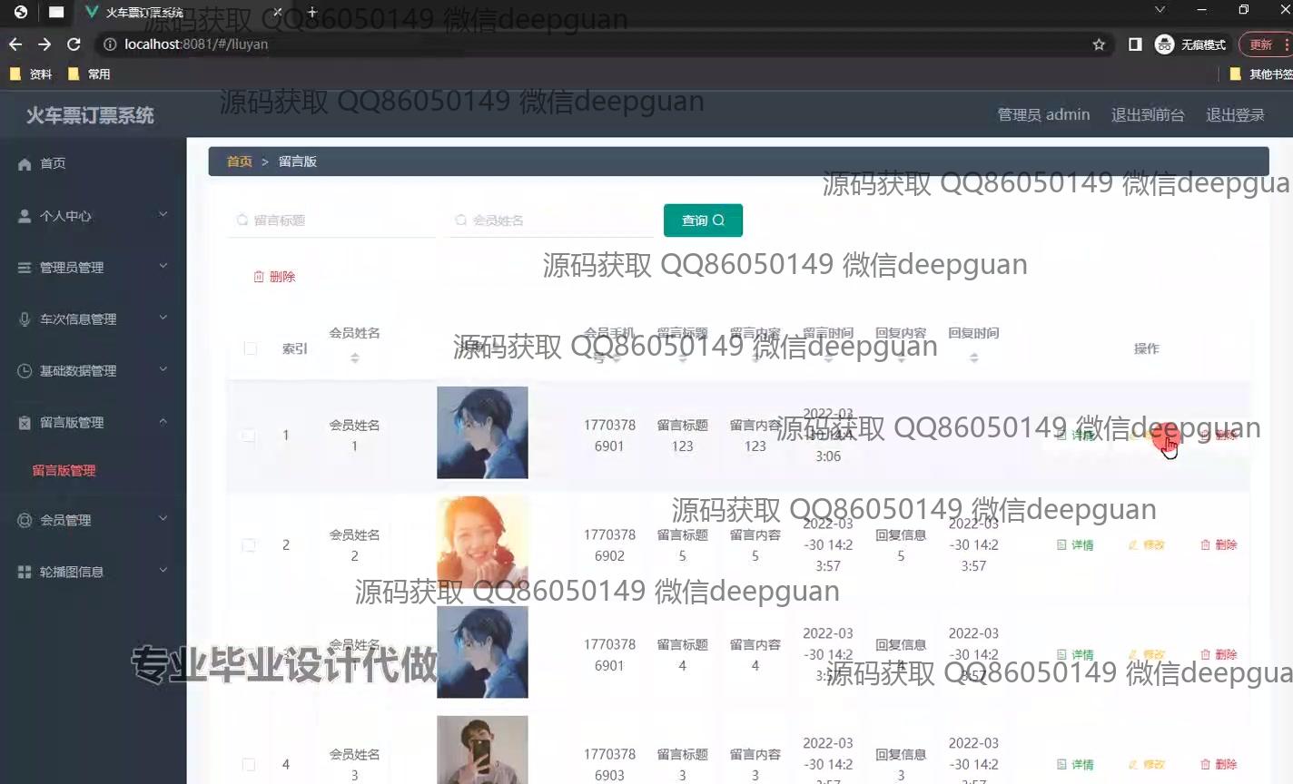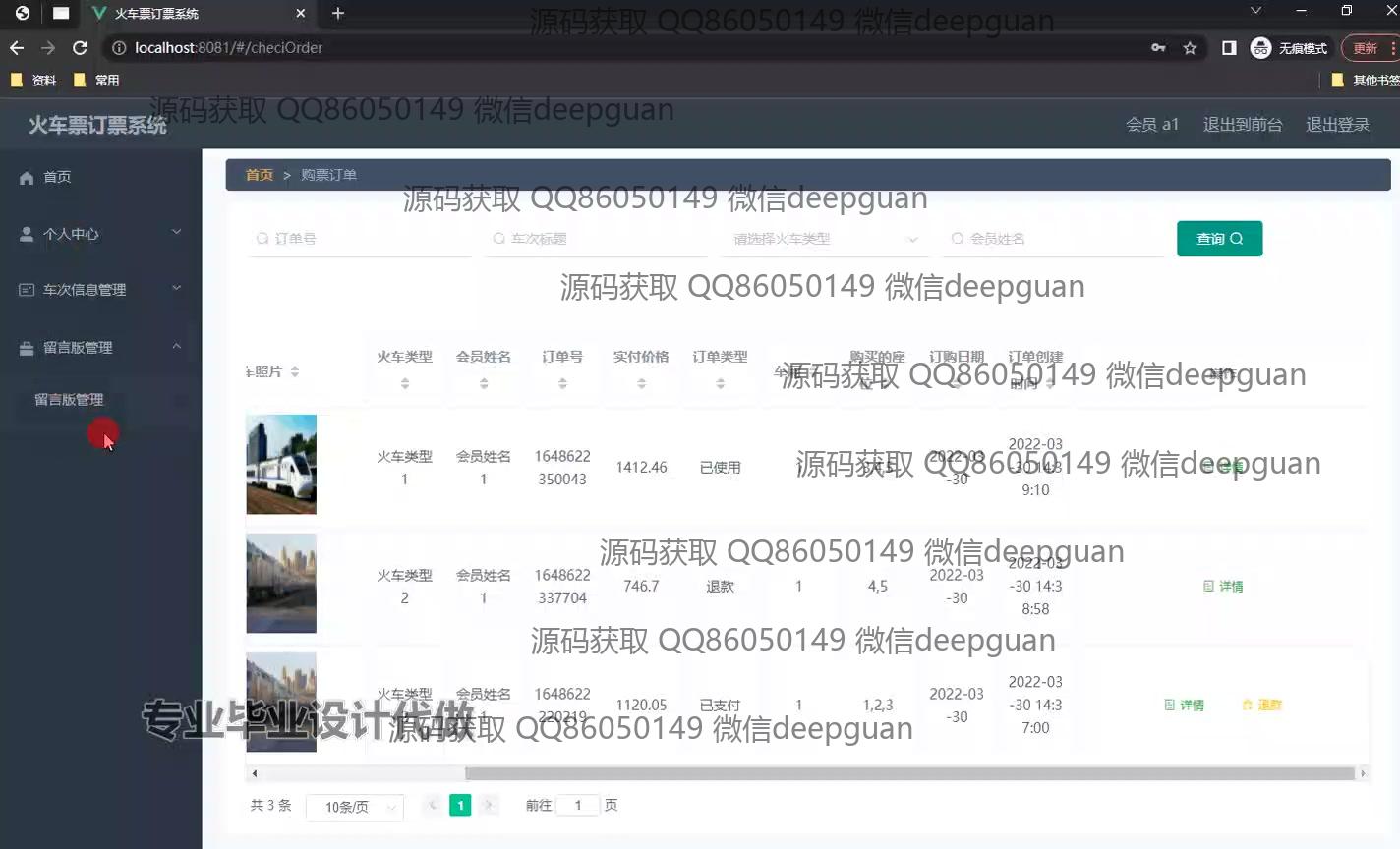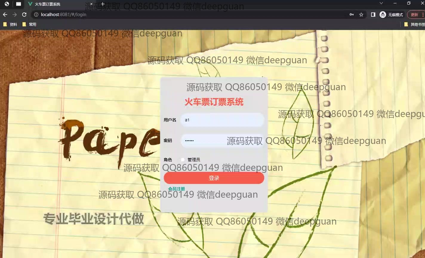 基于Java的火车票订票系统,角色分为管理员和用户;功能包括用户注册和登录、车次信息查询、留言板互动、订单管理及在线支付,提升了用户的便捷操作体验。 --计算机毕业设计源码;毕设源码;java毕业设计源码