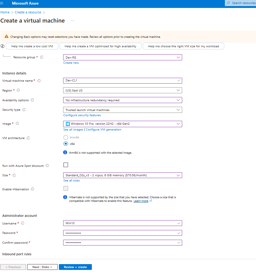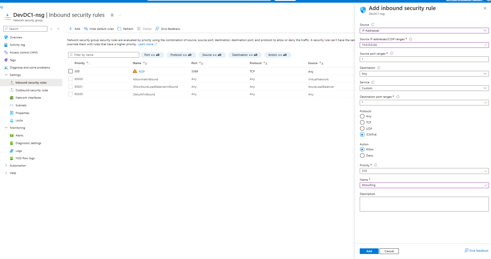 Create Resource Group and create Windows Server and Windows 10 Pro VMs