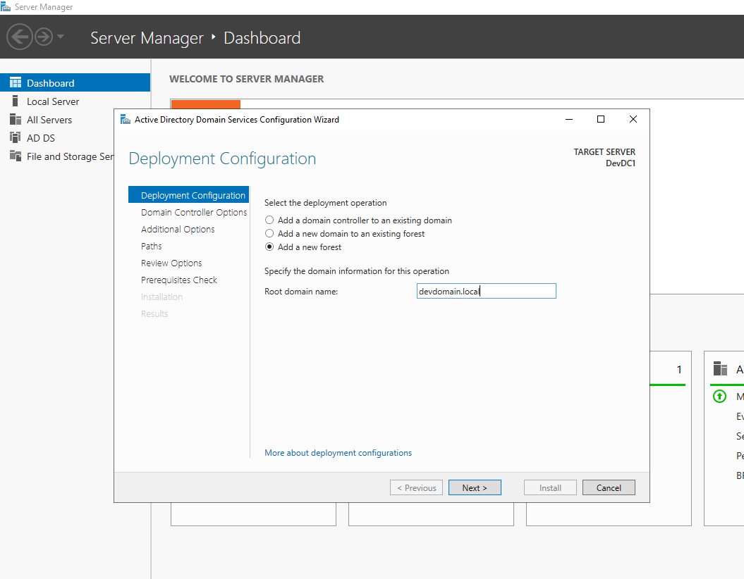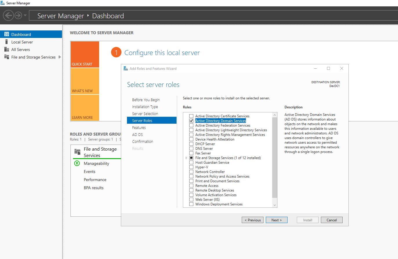 The concepts covered shows the creation of Active Directory, promoting it to a Domain controller, creation of the domain name, forest and an admin user, setting network security protocols and ensuring the network link between the Windows server domain controller and the Win10 client computer.
