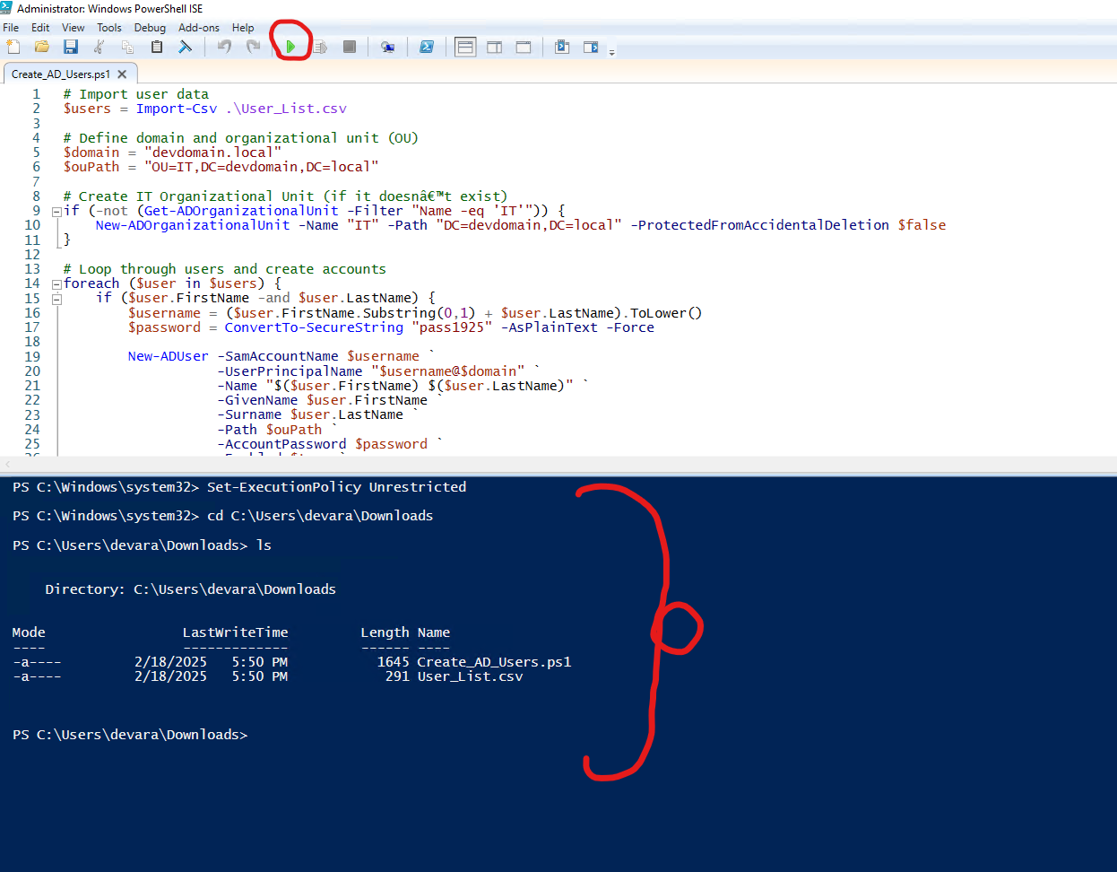 On Windows Server download Powershell script and user name csv file from https://github.com/DevAra007/active-directory-azure-vm