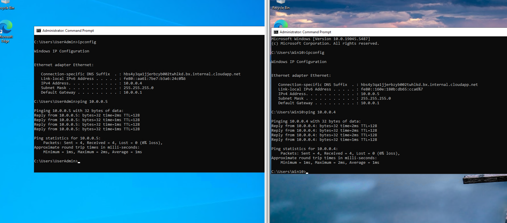 Login with RDP or IP address on Remote Desktop, enable ICMPv4 in both VM firewall for ping and setup DHCP, DNS and DG on Windows Server