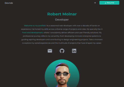 Resume with projects portfolio, employment history and contact information.