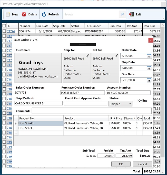 AdventureWorksLT Sample AdventureWorksLT application sample to demonstrate RDO.Net: You can find a detailed description in the documentation.