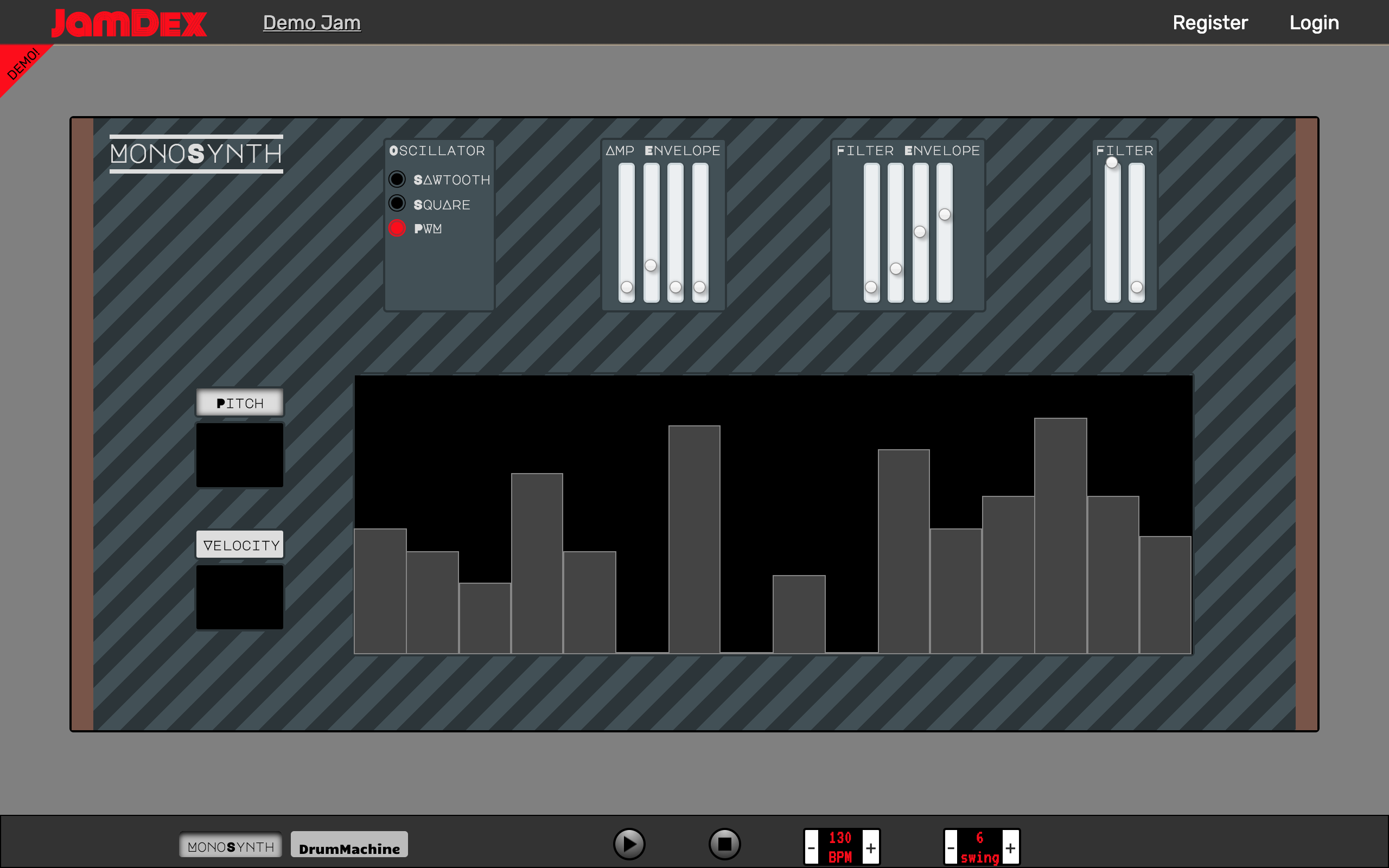 JamDex is an online music creation and sharing tool. It was developed by the two of us for our final project on the Web Development Immersive course at General Assembly.