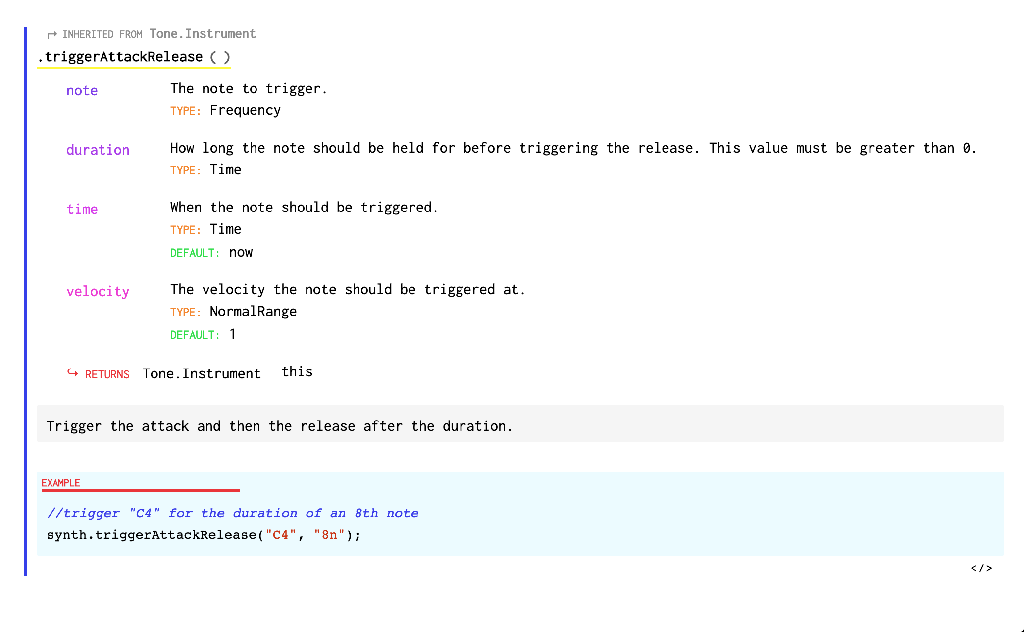 Tone.js solves this problem by assigning each audio event a precise time that it should occur. We just need to tell our events when we want them to happen and they will, even if the computer is busy.